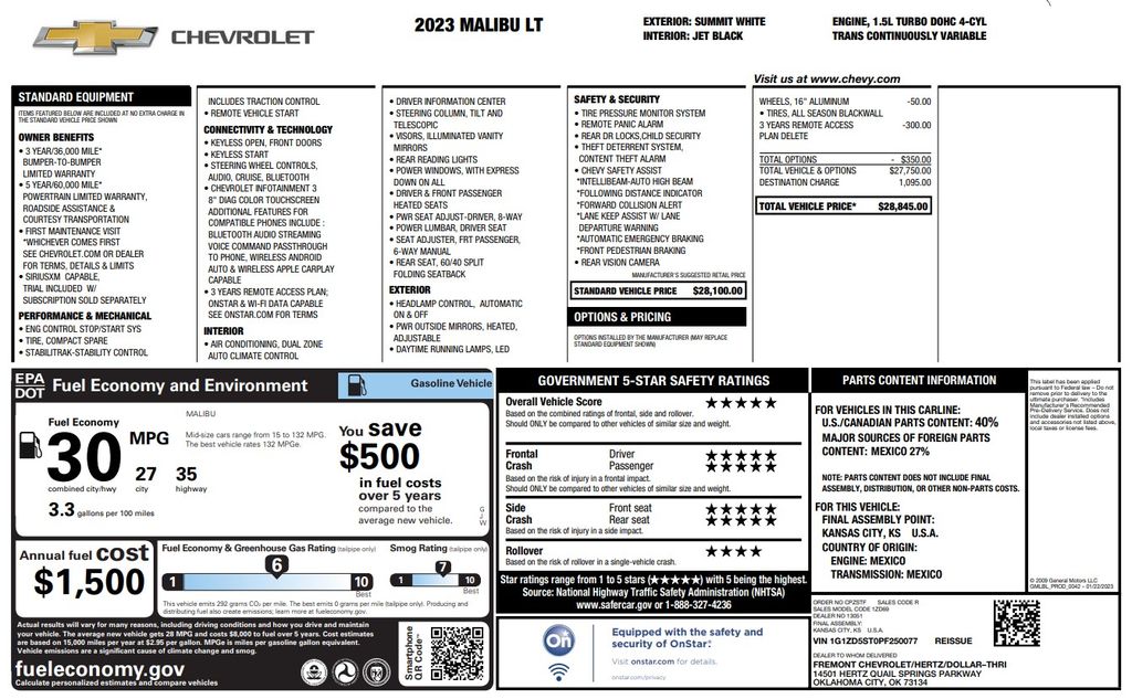 2023 Chevrolet Malibu LT features a features a 1.5L Turbo DOHC 4 Cylinder Engine!