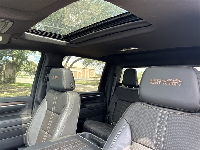 d Auto, Auto High-beam Headlights, Auto-dimming door mirrors, Auto-Dimming Inside Rear-View Mirror, Auto-Dimming Inside Rearview Mirror w/Camera, Auto-dimming Rear-View mirror, Automatic temperature control, Bed View Camera w/2 Trailer Camera Provisions, BLUETOOTH / HANDSFREE, Bluetooth® For Phone, Bodyside moldings, Bose Premium 7-Speaker Sound System, Brake assist, Bumpers: body-color, Chevrolet Connected Access Capable, Chevytec Spray-On Black Bedliner, Chrome Door Handles, Chrome Mirror Caps, CLEAN CARFAX!, Color-Keyed Carpeting Floor Covering, Compass, Compass Located In Instrument Cluster, Deep-Tinted Glass, Delay-off headlights, Driver door bin, Driver Memory, Driver vanity mirror, Dual front impact airbags, Dual front side impact airbags, Durabed Pickup Bed, Electric Rear-Window Defogger, Electronic Stability Control, Engine Block Heater, Exhaust Brake, EZ Lift Power Lock & Release Tailgate, Floor-Mounted Center Console, Front anti-roll bar, Front Bucket Seats, Front Carpeted Floor Mats, Front Center Armrest, Front Chrome Recovery Hooks, Front dual zone A/C, Front fog lights, Front LED Fog Lamps, Front License Plate Kit, Front Rain-Sensing Wipers, Front reading lights, Front wheel independent suspension, Fully automatic headlights, Garage door transmitter, Genuine wood console insert, Genuine wood dashboard insert, Genuine wood door panel insert, Gooseneck/5th Wheel Prep Package, Heated 2nd Row Outboard Seats, Heated door mirrors, Heated Driver & Front Outboard Passenger Seats, Heated front seats, Heated rear seats, Heated Steering Wheel, Heated steering wheel, Heavy-Duty 80 Amp-Hr Battery, High Country Premium Package, High Idle Switch, Hitch Guidance w/Hitch View, Illuminated entry, In-Vehicle Trailering App System, Keyless Open & Start, LED Cargo Area Lighting, LOCAL TRADE IN!, Low tire pressure warning, Manual Tilt-Wheel/Telescoping Steering Column, Memory seat, Multi-Flex Tailgate, Multicolor 15" Diagonal Head-Up Display, NAVIGATION, Navigation System, NON SMOKER VEHICLE, Occupant sensing airbag, OnStar & Chevrolet Connected Services Capable, Outside temperature display, Overhead airbag, Overhead console, Panic alarm, Passenger door bin, Passenger vanity mirror, Perforated Leather Seating Surfaces, Polished Exhaust Tip, Power Door Locks, Power door mirrors, Power driver seat, Power Front Windows w/Driver Express Up/Down, Power Front Windows w/Passenger Express Up/Down, Power passenger seat, Power Rear Windows w/Express Down, Power Sliding Rear Window w/Defogger, Power steering, Power Sunroof, Power Tailgate, Power windows, Power-Retractable Assist Steps, Preferred Equipment Group 3LZ, Premium audio system: Chevrolet Infotainment 3 Premium, PROFESSIONALLY DETAILED FOR DELIVERY!, Push Button Start, Radio: Chevrolet Infotainment 3 Premium System, Rain sensing wipers, Rear Carpeted Floor Mats, Rear Cross Traffic Alert, Rear reading lights, Rear seat center armrest, Rear step bumper, Rear Wheelhouse Liners, Rear window defroster, Remote keyless entry, Remote Vehicle Starter System, Security system, SiriusXM w/360L, Speed control, Speed-sensing steering, Split folding rear seat, Standard Tailgate, Steering Wheel Audio Controls, Steering wheel mounted audio controls, Steering Wheel Mounted Electronic Cruise Control, SUNROOF/MOONROOF, SUPER LOW MILES!, Suspension Package, Tachometer, Technology Package, Telescoping steering wheel, Tilt steering wheel, Traction control, Trailer Camera Provisions, Trailer Side Blind Zone Alert, Tri