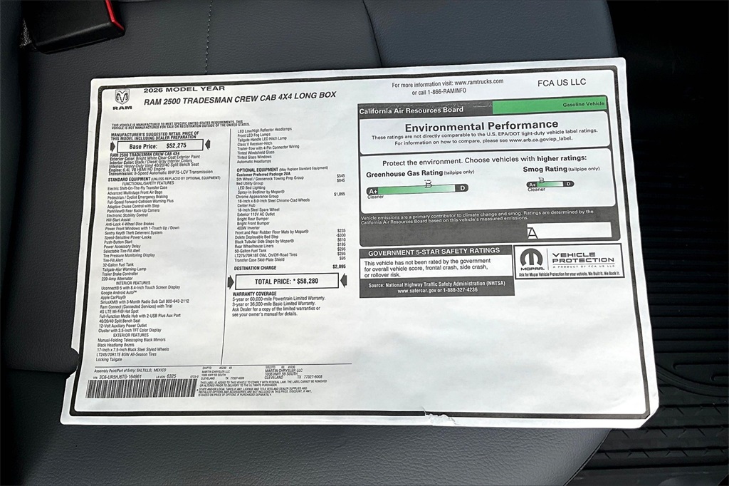 Bright White Clearcoat 2026 Ram 2500 Tradesman 4WD 8-Speed Automatic 6.4L V8 Prices do not include Tax, Title, License and Documentary Fee. Price does include: $1000 - 2026 National Bonus Cash . Exp. 02/02/2026