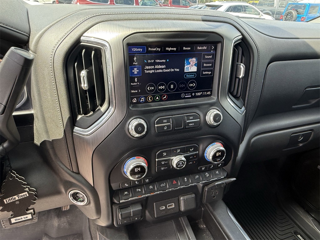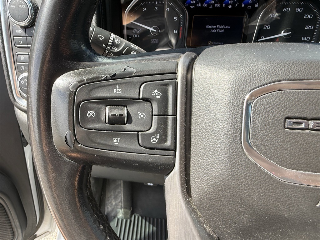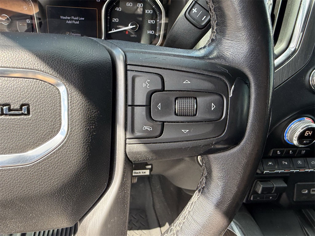 Driver Alert Package I (Lane Change Alert w/Side Blind Zone Alert, Rear Cross Traffic Alert, and Ultrasonic Front & Rear Park Assist), Driver Alert Package II (Adaptive Cruise Control, Automatic Emergency Braking, Following Distance Indicator, Forward Collision Alert, Front Pedestrian Braking, IntelliBeam Automatic High Beam On/Off, and Lane Keep Assist w/Lane Departure Warning), Preferred Equipment Group 5SA (12-Volt Rear Auxiliary Power Outlet, 120-Volt Bed Mounted Power Outlet, 120-Volt Instrument Panel Power Outlet, 170 Amp Alternator, 2 USB Ports, 2 USB Ports (1st Row), 4G LTE Wi-Fi Hotspot Capable, Auto-Locking Rear Differential, Auxiliary External Transmission Oil Cooler, Chrome Recovery Hooks, Chrome Wheel To Wheel Assist Steps, Color-Keyed Carpeting Floor Covering, Compass, Deep-Tinted Glass, Electric Rear-Window Defogger, Electrical Lock Control Steering Column, Floor-Mounted Center Console, GMC Connected Access Capable, HD Rear Vision Camera, Heated Driver & Front Outboard Passenger Seating, Heavy-Duty Air Filter, Hill Descent Control, Hitch Guidance w/Hitch View, In-Vehicle Trailering App, Integrated Trailer Brake Controller, Keyless Open & Start, LED Cargo Area Lighting, Manual Tilt-Wheel & Telescoping Steering Column, OnStar & GMC Connected Services Capable, Power Door Locks, Power Front Passenger Windows w/Express Up/Down, Power Front Windows w/Driver Express Up/Down, Power Rear Windows w/Express Down, Power Sliding Rear Window w/Rear Defogger, ProGrade Trailering System, Rear Dual USB Charging-Only Ports, Rear Wheelhouse Liners, Remote Vehicle Starter System, Safety Alert Seat, Signature Denali Grille, Spray-On Pickup Bed Liner w/Denali Logo, Steering Wheel Audio Controls, Theft Deterrent System (Unauthorized Entry), Universal Home Remote, Ventilated Driver & Front Passenger Seats, and Wireless Charging), Technology Package (Bed View Camera, HD Surround Vision w/2 Trailer View Camera Provisions, Multicolor 15" Diagonal Head-Up Display, and Rear Camera Mirror), Trailering Package (Hitch Guidance), 10-Speed Automatic, 4WD, Jet Black Leather, 10-Way Power Driver Seat Adjuster w/Lumbar, 10-Way Power Passenger Seat Adjuster w/Lumbar, 3.23 Rear Axle Ratio, 4-Wheel Disc Brakes, 7 Speakers, ABS brakes, Adaptive Ride Control Suspension, Adaptive suspension, Air Conditioning, Alloy wheels, AM/FM radio: SiriusXM with 360L, Apple CarPlay/Android Auto, Auto-dimming door mirrors, Auto-dimming Rear-View mirror, Automatic temperature control, Brake assist, Bumpers: body-color, Delay-off headlights, Driver door bin, Driver Memory, Driver vanity mirror, Dual front impact airbags, Dual front side impact airbags, Electronic Stability Control, Forge Perforated Leather-Appointed Seat Trim, Front anti-roll bar, Front Bucket Seats, Front Center Armrest, Front dual zone A/C, Front fog lights, Front License Plate Kit, Front reading lights, Front wheel independent suspension, Fully automatic headlights, Garage door transmitter, Genuine wood console insert, Genuine wood door panel insert, Heated 2nd Row Outboard Seats, Heated door mirrors, Heated front seats, Heated steering wheel, Illuminated entry, Low tire pressure warning, Memory seat, Navigation System, Occupant sensing airbag, Outside temperature display, Overhead airbag, Overhead console, Panic alarm, Passenger door bin, Passenger vanity mirror, Power door mirrors, Power driver seat, Power passenger seat, Power steering, Power windows, Premium audio system: GMC Infotainment System, Premium