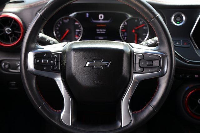 In every Blazer, intuitive driver-focused controls, switches and features are within easy reach. Camaro-inspired air outlets feature rotating dials for quick, intuitive climate control. Heated front seats provide a warm embrace in RS. A Bose premium 8-speaker audio system brings high-quality sound wherever you travel. True White ambient light pipes on the passenger side and below the front door handles combine with LED lighting in the center console to provide functional sophistication