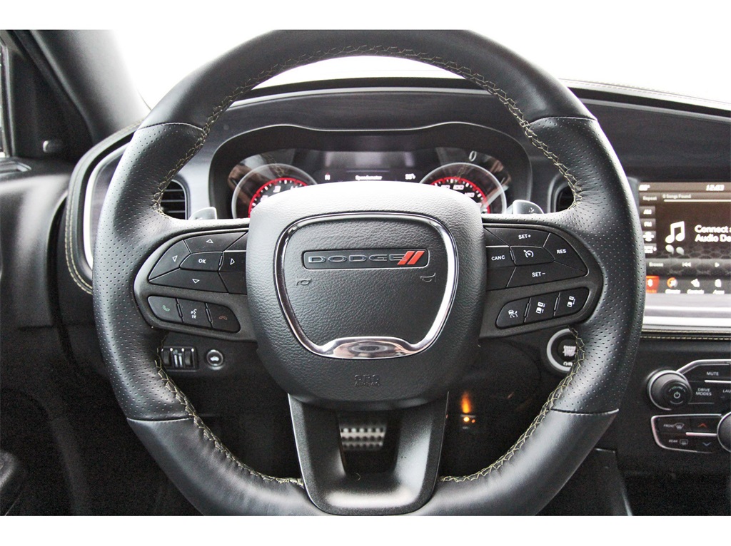 tenna Input, GPS Navigation, HD Radio, Integrated Center Stack Radio, Integrated Voice Command w/Bluetooth, Media Hub (2 USB, AUX), Radio: Uconnect 4C Nav w/8.4" Display, SiriusXM Traffic Plus, SiriusXM Travel Link, and USB Host Flip), Plus Group (Auto Adjust In Reverse Exterior Mirrors, Auto-Dimming Exterior Driver Mirror, Black-Edged Premium Floormats, Blind Spot & Cross Path Detection, Blind Spot Memory/Power/Heat Mirror, Driver & Passenger Lower LED Lamps, Exterior Mirrors Courtesy Lamps, Exterior Mirrors w/Heating Element, Front Overhead LED Lighting, Heated Front Seats, Power 2-Way Driver Lumbar Adjust, Power 2-Way Passenger Lumbar Adjust, Power Front Driver/Passenger Seats, Power Tilt/Telescope Steering Column, Premium-Stitched Dash Panel, Radio/Driver Seat/Mirrors Memory, Rear Armrest w/Cupholder Seat, Scat Pack Logo Nappa/Alcantara Seat, and Ventilated Front Seats), Quick Order Package 21V Scat Pack Widebody (All Speed Traction Control, Body Color Fender Flares, Brembo 6-Pot Fixed Front Caliper Brakes, Flat-Bottom Steering Wheel, Performance Shift Indicator, Wheels: 20" x 11" Carbon Black Aluminum, and Widebody Competition Suspension), Swinger Special Edition (Aluminum Interior Bezel w/Wood Look, Basil Green IP/Console/Door Stitching, Gold School Bee Fender Badge, Gold School Scat Pack/Bee Decklid Badge, Gold School Scat Pack/Bee Grille Badge, Nappa Alcantara Seat Trim w/Green Stitch, Rhombi 2-Pc Wheel Center Cap, Satin Black Dodge Tail Lamp Badge, Swinger Exterior Vinyl Graphics, Unique IP Badge, and Wheels: 20" x 11.0" Gold School), Technology Group (Adaptive Cruise Control w/Stop, Advanced Brake Assist, Auto High Beam Headlamp Control, Full Speed FWD Collision Warn Plus, Lane Departure Warning Plus, and Rain Sensitive Windshield Wipers), Widebody Package, Black Cloth, 4-Wheel Disc Brakes, 6 Speakers, ABS brakes, Adaptive Damping Suspension (DISC), Air Conditioning, Alloy wheels, AM/FM radio: SiriusXM, Anti-whiplash front head restraints, Apple CarPlay/Android Auto, Auto-dimming Rear-View mirror, Automatic temperature control, Brake assist, Bumpers: body-color, Cloth Performance Seats w/Heat, Compass, Delay-off headlights, Driver door bin, Driver vanity mirror, Dual front impact airbags, Dual front side impact airbags, Electronic Stability Control, Emergency communication system: SiriusXM Guardian, Four wheel independent suspension, Front anti-roll bar, Front Bucket Seats, Front Center Armrest, Front dual zone A/C, Front fog lights, Front reading lights, Fully automatic headlights, Garage door transmitter: HomeLink, Heated door mirrors, Heated front seats, Heated steering wheel, Illuminated entry, Knee airbag, Leather Shift Knob, Low tire pressure warning, Occupant sensing airbag, Outside temperature display, Overhead airbag, Overhead console, Panic alarm, ParkView Rear Back-Up Camera, Passenger door bin, Passenger vanity mirror, Power door mirrors, Power driver seat, Power steering, Power windows, Radio: Uconnect 4C w/8.4" Display, Rear anti-roll bar, Rear reading lights, Rear seat center armrest, Rear window defroster, Remote keyless entry, Security system, Speed control, Speed-Sensitive Wipers, Split folding rear seat, Spoiler, Sport steering wheel, Steering wheel mounted audio controls, Tachometer, Telescoping steering wheel, Tilt steering wheel, Traction control, Trip computer, Variably intermittent wipers, and Wheels: 20" x 9" Lo Gloss Granite Crystal!!