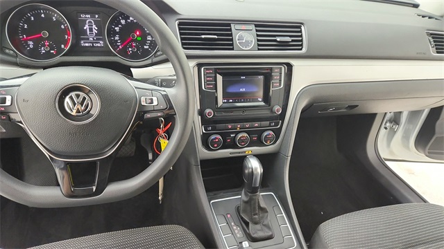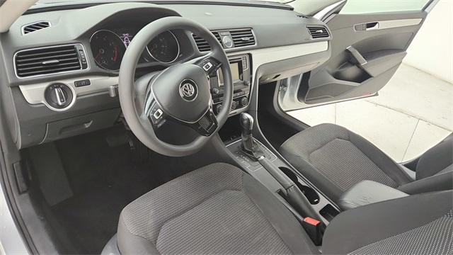cabin with black cloth seating, dual-zone automatic climate control, a rearview camera, and advanced infotainment with AM/FM/CD audio and Bluetooth connectivity. Safety is built-in with electronic stability control, multiple airbags, and a robust braking system. Alloy wheels, automatic headlights, and a sleek exterior design complete the package, giving this Passat both style and practicality.