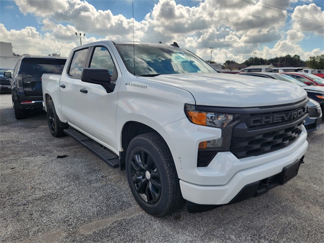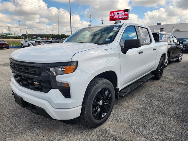 CARFAX One-Owner. Summit White 2023 Chevrolet Silverado 1500 Custom RWD 8-Speed Automatic 2.7L Turbo LOCAL TRADE, CARFAX MINOR DAMAGE, CARFAX 1 OWNER, NON SMOKER, KEYLESS ENTRY, REMOTE START, APPLE CARPLAY, ANDROID AUTO, SIRIUS XM RADIO, ON STAR, AM/FM/HD RADIO, BLUETOOTH HANDS FREE CALLING, FRONT USB CHARGING PORTS, MP3 IPOD COMPATIBLE, AUTO HEADLIGHTS, DAYTIME RUNNING LIGHTS, POWER ADJUSTABLE DRIVERS SEAT, RUNNING BOARDS, TOW PKG, 8-Speed Automatic, Black Cloth, 10-Way Power Driver Seat w/Lumb