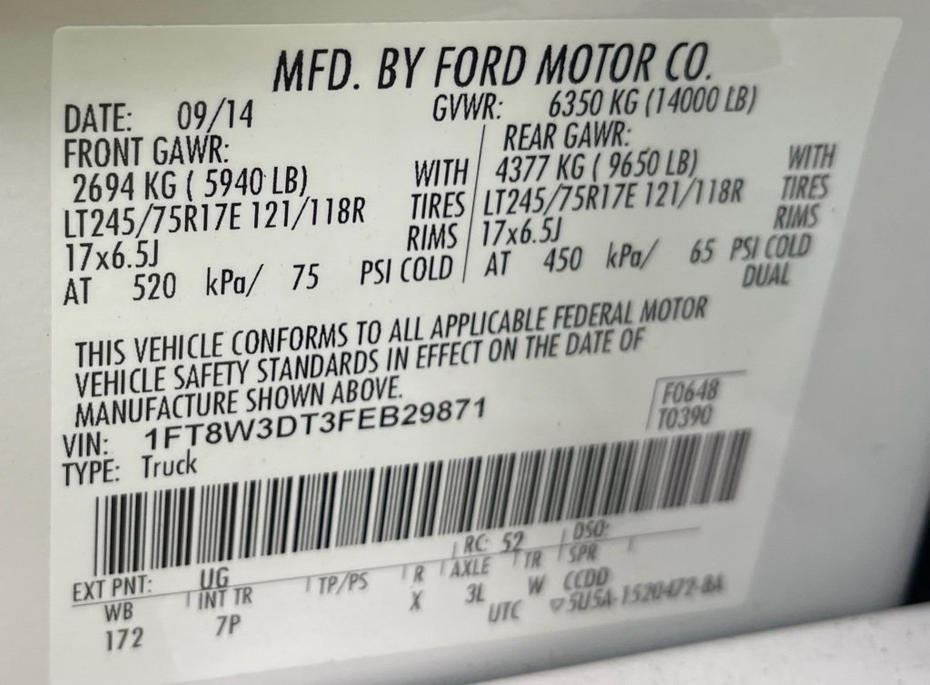 1FT8W3DT3FEB29871Stock #