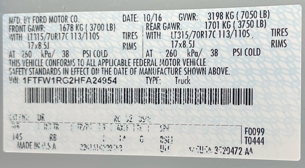 1FTFW1RG2HFA24954Stock #